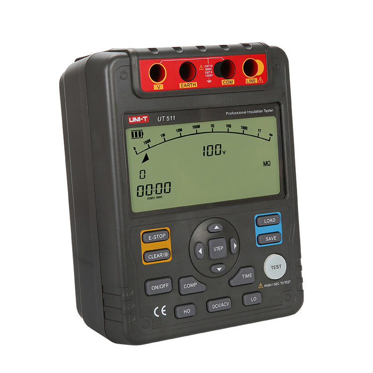 میگر دیجیتال یونیتی UNI-T UT511 یکی از از پرفروش ترین دستگاه های تست عایق موجود در بازار می باشد که دارای کیفیت فوق العاده و قابلیت اندازه گیری مقاومت عایق از 0.1MΩ تا 10GΩ می باشد. ولتاژ تست این کد محصول در 4رنج 1000V/500V/250V/100V می باشد همچنین توانایی اندازه گیری ولتاژ متناوب را نیز دارد. این میگر دارای نمایشگر بزرگ به همراه نور پس زمینه قابلیت اندازه گیری پیوسته را دارد و با توجه به این موضوع تایمری بر روی نمایشگر آن وجود دارد که میتواند مدت زمان تست را تا 30 دقیقه نمایش دهد. از دیگر ویژگی های مهم این میگر قابلیت اندازه گیری شاخصه های PI و DAR است . این میگر علاوه بر ولتاژ تزریقی میتواند مقدارمقاومت معمولی و ولتاژ AC و DC را تا 1000 ولت اندازه گیری کرده و بر روی نمایشگر با رنج اتوماتیک نمایش دهد. بر روی نمایشگر این دستگاه با گراف آنالوگ وجود داشته و میتواند داده را تا 18 گروه ذخیره سازی نیز کند. مقدار جریان این میگر در حالت اتصال کوتاه کمتر از 2 میلی آمپر است که نشان دهنده قابلیت تست بدون آسب رسانی به مدارات تحت تست می باشد.