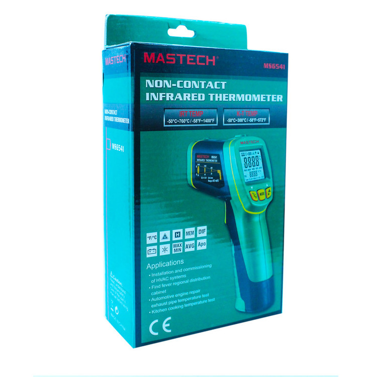 ترمومتر لیزری مستک مدل MS6541 ترمومتری حرفه ای، دستی و غیر تماسی با ترموکوپل دمایی نوع k می باشد. ترمومتر لیزری مستک کاربردی راحت، دقتی بالا و محدوده اندازه گیری دمایی گسترده ای دارد. این دستگاه دارای قابلیت اندازه گیری با سرعت و دقت بالا می باشد.