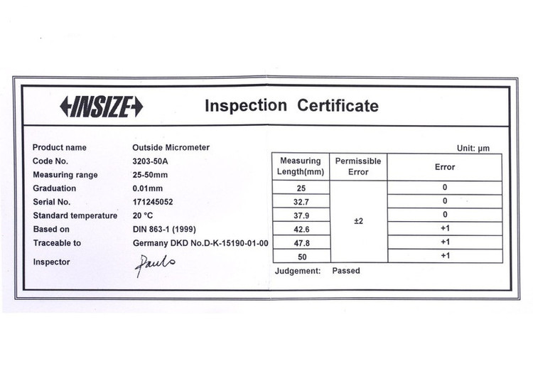 - تحت لیسانس اتریش - مطابق با استاندارد DIN863 - گواهی قابل ردیابی از DKD آلمان - دارای برگه کالیبره - گستره 50-25 میلیمتر