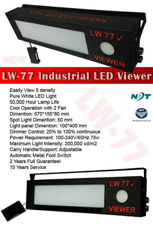 ویوور رادیوگرافی LW33 که بر اساس اخرین استانداردهای تستهای غیر مخرب رادیوگرافی ساخته شده است، پرفروش ترین ویوور رادیوگرافی موجود در ایران است. این ویوور دارای امکاناتی مانند فن اتوماتیک، پدال تنظیم نور، دکمه تنظیم نور دستی، نقطه بین ( Spot Light) و خط کش مدرج است. در ساخت این ویوور از لامپ های LED پر نور و بروز استفاده شده است که علاوه بر داشتن طول عمر بالا مانع از گرم شدن دستگاه و همچنین اسیب به فیلم رادیوگرافی می شود. این دستگاه دارای گارانتی بی قید و شرط 2 ساله و خدمات پس از فروش نامحدود است.