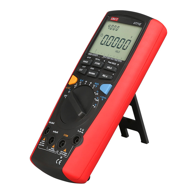 مولتی متر دیجیتال پرتابل یونیتی UNI-T UT71E یکی از حرفه ای ترین مولتیمتر های سری UT71 می باشد که توانایی اندازه گیری مقادیر ولتاژ ، جریان متناوب و مستقیم، مقاومت تا 40 مگا اهم،خازن و فرکانس همچنین دما را داراست تنظیم رنج اندازه گیری و ذخیره سازی و فراخوانی مقادیر نمایش ماکزیمم و مینیمم اصلی ترین ویژگی های این مولتی متر محسوب می شوند. مولتی متر دیجیتال UT71E برای انجام اندازه گیری های الکترونیکی و تجهیزات اتوماسیون کارخانه، تعمیر انواع برد الکتریکی استفاده می شود تمامی این ویژگی ها مولتی متر دیجیتال پرتابل UNI-T UT71E را به یکی از پرطرفدارترین و بهترین تجهیزات تعمیر و نگهداری بین مهندسین و تکنسین های برق و الکترونیک تبدیل نموده است