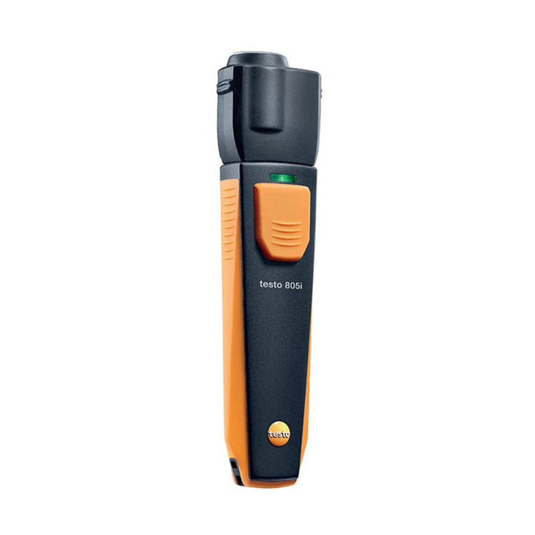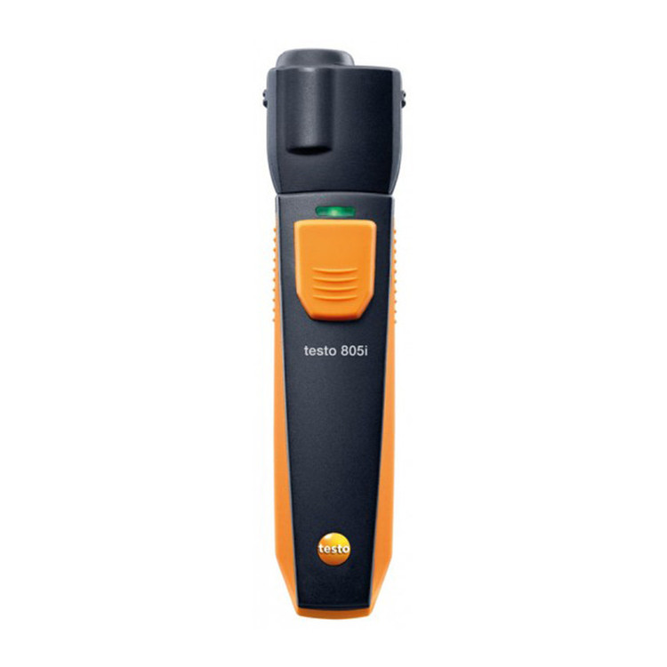 ترمومتر لیزری تستو مدل TESTO 805I دستگاهی است که می تواند درجه حرارت را به صورت غیر تماسی و یا اینفرارد به کمک یک لیزر دایره ای شکل که محدوده محل سنجش دما را نشان می دهد , بسنجد. لیزری که به صورت دایره تعبیه شده دقت هدف گیری اندازه گیری را به شدت افزایش می دهد .ترمومتر لیزری تستو مدل TESTO 805I یک دماسنج غیر تماسی است که قابلیت اندازه گیری دما بین -30 تا250 درجه سانتی گراد را دارا می باشد. دستگاه ترمومتر لیزری وایرلس مدل TESTO 805i با قابلیت لیزر مادون قرمز دایره ای برای بالابردن دقت اندازه گیری جهت اندازه گیری درجه حرارت اجسام مورد استفاده قرار می گیرد. همچنین این دماسنج با قابلیت اتصال از طریق بلوتوث به گوشی های هوشمند به صورت بی سیم میتوان مقادیر اندازه گیری شده را بروی گوشی مشاهده و با استفاده از نرم افزار مقادیر را انالیز کرد. از برنامه testo Smart Probes می توانید به منظور اتصال به گوشی هوشمند با سیستم عامل اندروید و IOS استفاده کرده با آن از اشیاع , الگوی لیزری و خواندن دما عکس بگیریدو برای مراجع خود استفاده کنید همچنین به راحتی می توانید بوسیله آن اطلاعات را ذخیره کنید . این نرم افزار به شما این اجازه را می دهد که از راه دور از ۶ دستگاه مختلف به سادگی نتایج را ببینید و ذخیره کنید . تمام اطلاعات در این نرم افزار می تواند به صورت یک فایل و یا جدول و نمودار نمایش داده شود و می تواند به فایل PDF یا اکسل ذخیره شود . این برنامه گزارش های سفارشی ایجاد می کند که می تواند ذخیره شده و یا با ایمیل به اشتراک گذاشته شود. این کار در زمان شما سرفه جویی زیادی می کند و کار با آن را لذت بخش می کند .