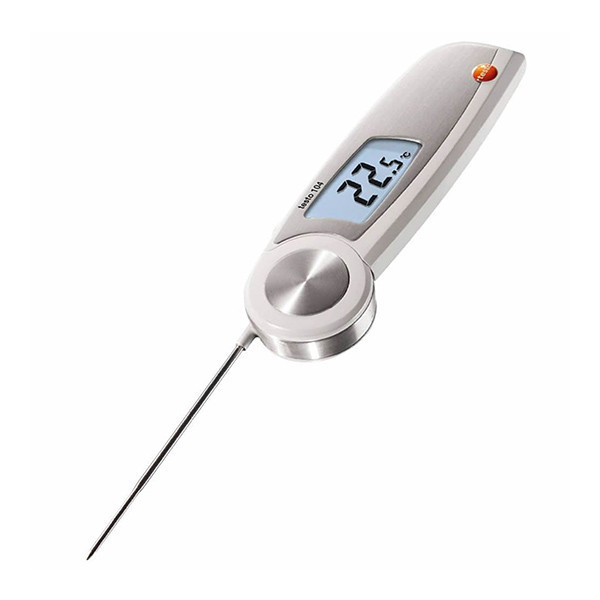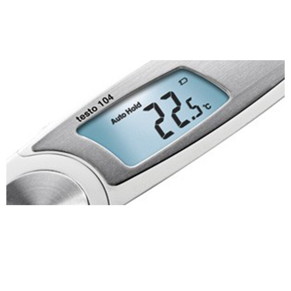 دماسنج نفوذی و تماسی ضدآب تستو مدل TESTO 104 دارای استاندارد IP65 نیز هست . این دماسنج برای استفاده در آشپزخانه های حرفه ای بسیار مناسب بوده و قابلیت این را دارد که به راحتی زیر آب شستشو داده شود. این دستگاه مقاوم در برابر پاک کننده های خنثی و ضد عفونی کننده های الکلی می باشد و علاوه بر اینها از ویژگی های مهم این محصول عبارتند از اندازه گیری دما در بازه -50 تا 250 درجه سانتیگراد با دقت یک عدد صحیح و وضوح دمایی یکدهم.
