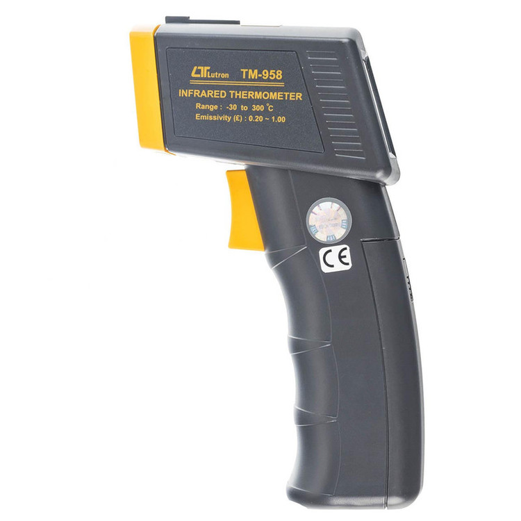 ترمومتر غیر تماسی / لیزری لوترون مدل TM-958 دما از پارامترهای بسیار مهم در پروسه های صنعتی است . در حقیقت کمتر پروسه کنترلی بدون کنترل دما میتوان در نظر گرفت . ترمومتر (Thermometer) وسيلهای است که درجه حرارت را اندازهگيری میکند و برای مقاصد مختلفی به کار میرود. ترمومتر لیزری یا ترمومتر غیر تماسی لوترون مدل TM-958 از جمله ترمومتر های ساخت شرکت لوترون می باشد که قابلیت اندازه گیری دما به صورت سانتی گراد / فارنهایت را میدهد . این دستگاه محهز به ثابت نگه دارنده صفحه نمایش می باشد . همچنین لیزر نشانگر به کار رفته در این دستگاه قابل تنظیم می باشد که این امر باعث سهولت استفاده از دستگاه می شود . قابلیت تنظیم کانون سنجش برای دقت بالاتر نیز فراهم شده است .