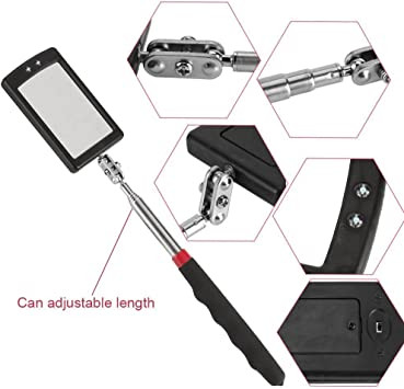 1- دارای دو عدد چراغ LED روی آینه جهت بازرسی مناطق کم نور و تاریک.