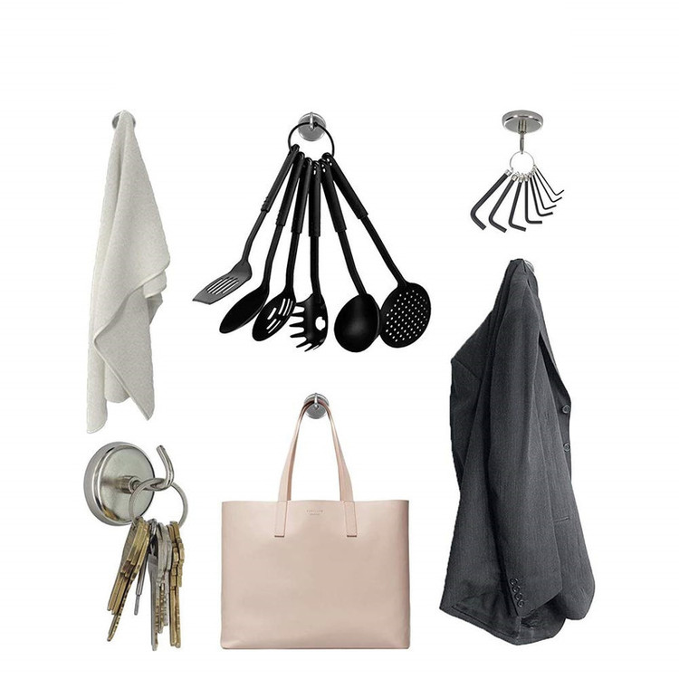 مناسب برای آویز انواع وسایل خانگی و صنعتی از قبیل کلید ، ابزارآلات ، کیف و پوشاک و .... نیروی جاذبه فوق العاده قوی تحمل وزن تا 7 کیلوگرم