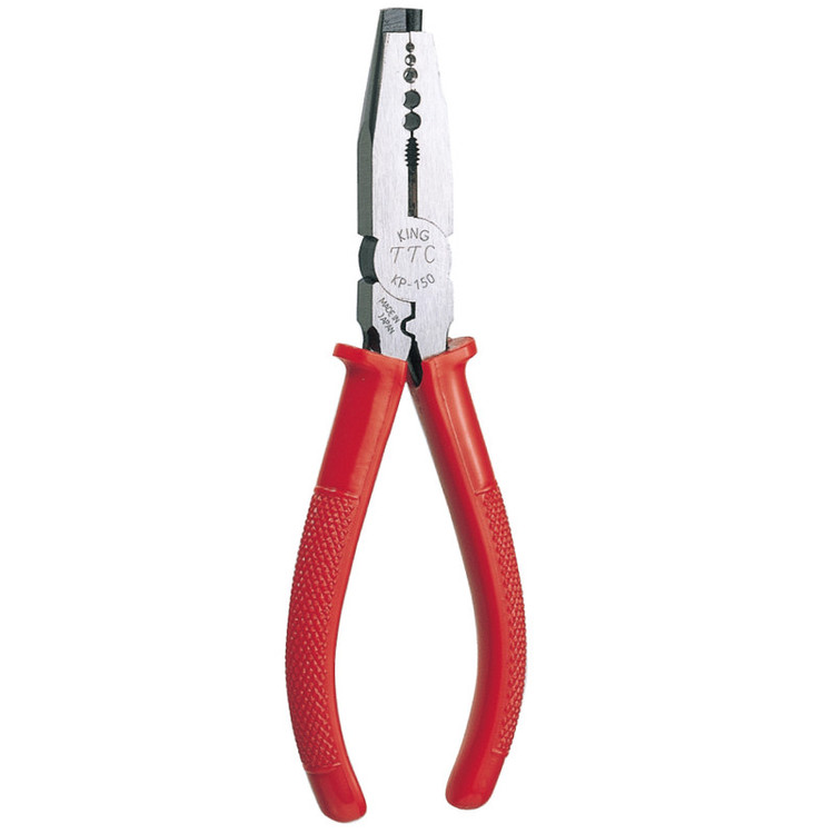 متاسفانه این کالا در حال حاضر موجود نیست. میتوانید از طریق لیست بالای صفحه، از محصولات مشابه این کالا دیدن نمایید.سری king ttc از سری محصولات شرکت ژاپنی تسونودا می باشد . از مشخصات بارز این سری می توان به کیفیت و دوام بالا اشاره نمود . انبردست مدل KP-150 از محصولات شرکت تسونودا می باشد که از کاربرد چندگانه بهره می برد . از این انبردست منحصربه فرد می توان برای برش و لخت کردن سیم ، خم کردن ، پیچاندن ، سفت کردن مهره ها و ... استفاده نمود . ظرفیت برش این محصول برای سیم های استیل 16 ، مس 10 ، برنج 12 و آهن نرم 12 میلی متر می باشد . بدنه این انبردست از بهترین آلیاژ ساخته شده است تا دوام بالایی از خود نشان دهد . روی دسته این انبر از روکش پی وی سی ضد لغزش استفاده شده است. تمامی محصولات تسونودا ساخت ژاپن می باشند و این موضوع روی بدنه و بسته بندی محصول حک شده است .