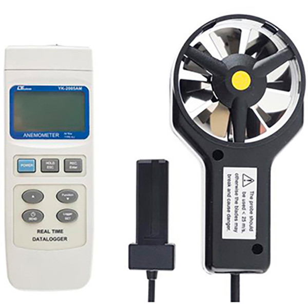 سرعت سنج باد لوترون مدل YK-2005AM: فلومتر دستگاهی است که به وسیله آن می توان سرعت هوای متحرک را اندازه گیری کرد .همچنین در دستگاه دماسنج –باد سنج می توان از طریق سنسوری که درون باد سنج به کار گذاشته شده است ,دما هوا را نیز اندازه گیری کرد . واحد اندازه گیری در باد سنج ها عبارتند از فوت بر دقیقه (ft/min) ، متر بر ثانیه (m/s) ، کیلومتر بر ساعت ، مایل بر دقیقه و ماخ بر ساعت و غیره . چگونه یک سرعت سنج باد می تواند شدت جریان هوای در حال حرکت را اندازه گیری کند ؟ باد سنج ها به وسیله سنسور دوار میتوانند میزان سرعت هوا ی در حال حرکت را اندازه گیری کند ، تیغه پره ها آزادانه می چرخند تا هوا به جریان در آید و همچنان که هوا از میان پره ها می گذرد تیغه ها به همان سرعت درحرکت در میایند و سرعت را نمایش میدهند. سرعت سنج باد لوترون مدل YK-2005A دارای پراب مجزا با پروانه های فلزی برای دماهای بالا می باشد . همچنین این دستگاه قادر به اندازه گیری دما،سرعت،فلو و دارای حافظه مینیمم و ماکزیمم می باشد .محصول دارای حافظه تا ثبت 16000 مقدار و هم چنین حافظه مینیمم و ماکزیکمم است و قابلیت اتصال به کامپیوتر توسط کابل RS-232 و USB از دیگر مزیت های این دستگاه است. این ویژگی ها،این محصول را به یکی از بهترین های موجود در بازار بدل کرده است .