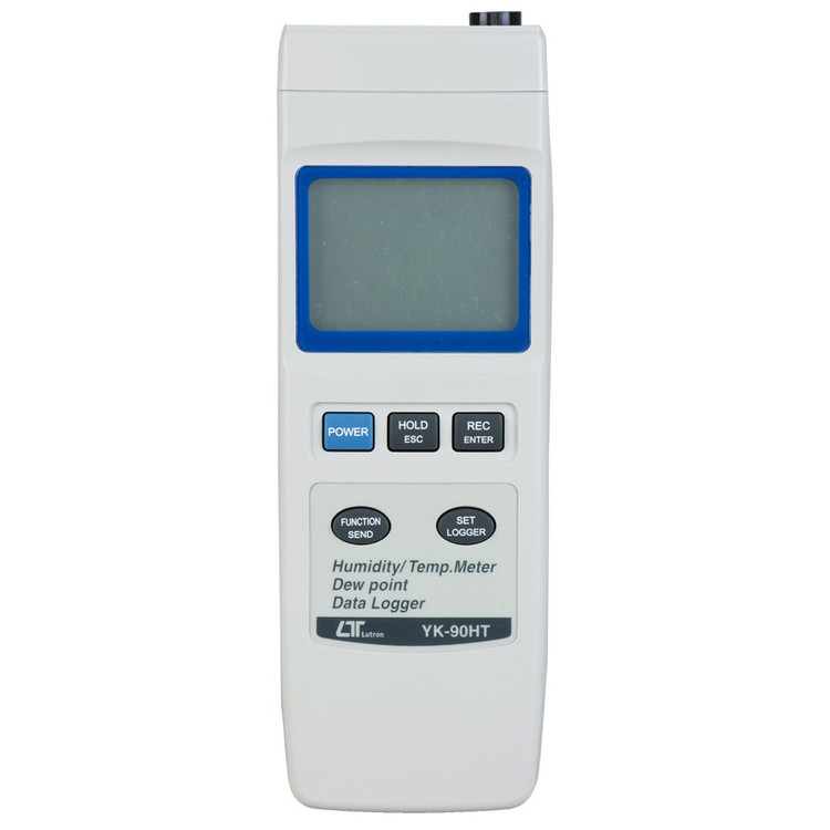 رطوبت سنج لوترون مدل YK-90HT: رطوبت سنج / دما سنج دستگاهی است که میتواند میزان رطوبت و دمای محیط را اندازه گیری کند . واحد اندازه گیری رطوبت نسبی ، درصد است (محدوده اندازه گیری 0.0 الی 100 %) . رطوبت نسبی بالاترین میزان رطوبت است که هوا میتواند بدون چگالش آن را نگه دارد . این تجهیزات قادر است بوسیله یک ترموستات میزان دما رانیز با واحد C یا F اندازه گیری و نمایش دهد . رطوبت سنج لوترون مدل YK-90HT از این قبیل تجهیزات است که میتواند رطوبت ، دما ، و نقطه شبنم را اندازه گیری کند . این دستگاه دارای حافظه تا ثبت 1000 مقدار به تاریخ وساعت، مینیمم و ماکزیمم است . همچنین دستگاه از قابلیت اتصال به کامپیوتر توسط کابل USB و یا RS-232 برخوردار می باشد .