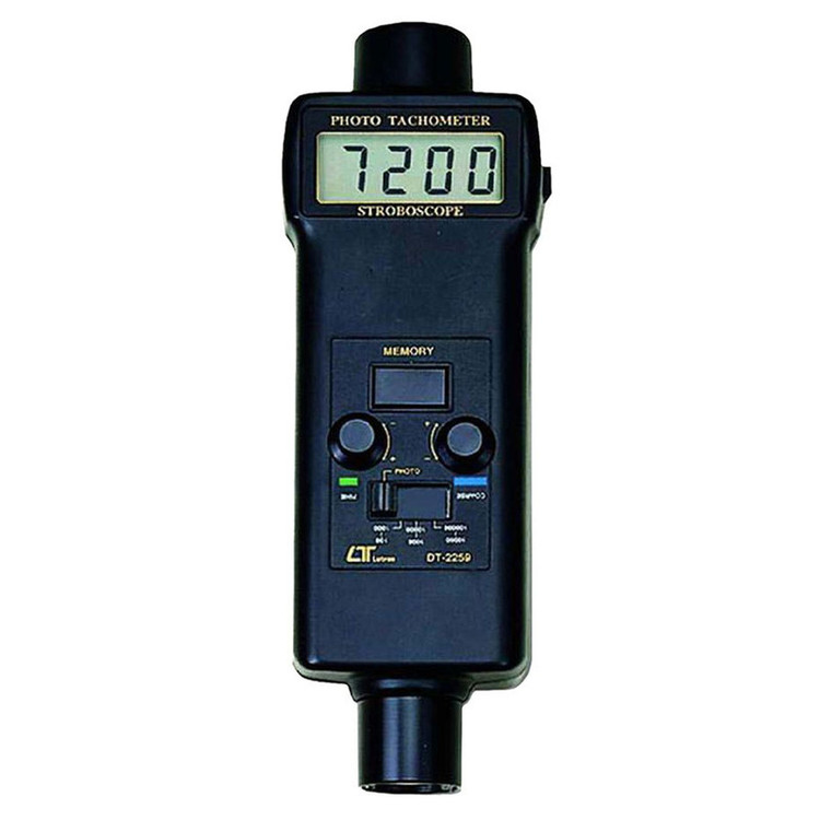 تاکومتر یا دور سنج چیست ؟ دور سنجی و سرعت سنجی درتجهیزات تست را میتوان به صورت مکانیکی یا نوری یا الکتریکی انجام داد این تست معمولاً در موتورهای الکتریکی و تجهیزات دوار مورد استفاده قرار میگیرد . در نمونه های مکانیکی معمولا در انتهای دستگاه یک برآمدگی دوکی شکل یا استوانه ای شکل جهت تماس با جسم دوار تعبیه گردیده که همزمان با افزایش سرعت و تعداد دور بر دقیقه دستگاه با تبدیل این کمیت مکانیکی به الکتریکی برای مثال اتصال زائده به شافت یک آرمیچر میتواند مقدار سرعت و دور بر دقیقه را اندازه گیری نماید . در نمونه های نوری لیزری معمولاً این اندازه گیری به کمک چسباندن یک برچسب منعکس کننده لیزر تابشی از دستگاه میتوان سرعت و تعداد دور بر دقیقه را مشخص کرد در نمونه های دیگر دورسنجی نوری که به استروبوسکوپ معروف هستند از مکانیزم جالبی استفاده کرده به این صورت که در ابزار استروبوسکوپ با فرکانس مختلف میتوان یک فلاش را تحرک کرد و فلاشری شروع به خاموش و روشن شدن و فلاش زدن میکند . در چشم ما با توجه به اینکه در فلاشهای لحظه تصویر را به وضوح میبیند در حالتی که فرکانس فلاش زدن دستگاه با فرکانس چرخش برای مثال یک فن برابر شد ، جسم دوار را به صورت ثابت و بدون حرکت میبیند که از این روش میتوان اولین فرکانس کردش دستگاه که معرف دور بر دقیقه یا rpm است را بدست آورد . از استربوسکوپ جهت تشخیص عیوب سطح ورقها و یا سطوحی که عیوب متوالی و با فاصله زمانی مشخص در خط تولید دارند میتوان استفاده نمود . دورسنج / استروب استکوپ لوترومدل DT-2259 قابلیت اندازه گیری به دو روش نوری و استروب استکوپ را به شما میدهد.