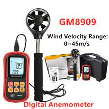 سرعت سنج باد و دماسنج بنتک BENETECH GM8909 به همراه پراب مجزا است که دستگیره پراب به صورت تلسکوپی، کوتاه یا بلند می شود. این بادسنج جهت اندازه گیری سرعت باد و دمای محیط به کار می رود. این آنمومتر، فلوی باد را تا 999900 متر مکعب بر دقیقه، سرعت باد را تا 45 متر بر ثانیه و دما را تا 45 درجه سانتیگراد اندازه می گیرد.