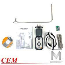 همچنین دستگاه فشار سنج تفاضلی سم CEM DT-8920 ،اندازه گیری سرعت باد که محدوده اندازه گیری فشار آن در محدوده ۵۰۰۰ Pa بوده و محدوده اندازه گیری سرعت هوا در بازه ۱ تا ۸۰ متر بر ثانیه می باشد. بنابراین شما می توانید فشار تفاضلی و سرعت هوا را اندازه گیری کرده و مقادیر حاصل را بر روی صفحه نمایش LCD دستگاه مشاهده نمایید. علاوه بر اندازه گیری این دو پارامتر کمیت های دیگری مانند فلوی هوا (CFM/CMM) و دمای هوای عبوری با استفاده از این فشارسنج تفاضلی و سرعت سنج باد CEM قابل اندازه گیری است.