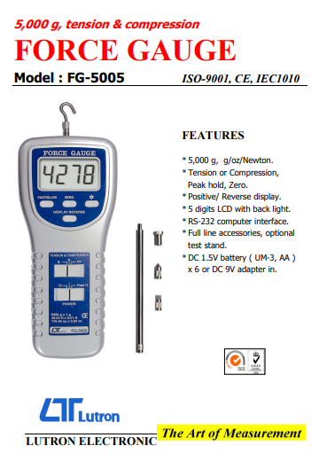 مدل: نیرو سنج لوترون Lutron FG-5005