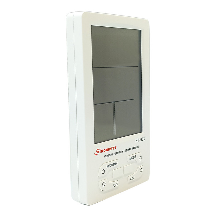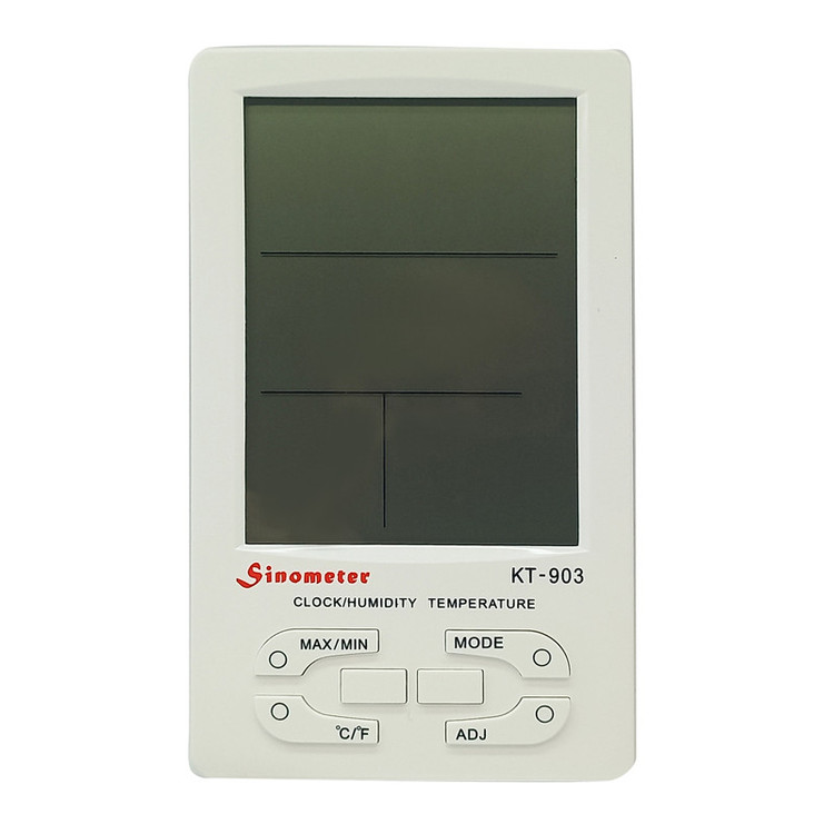 رطوبت سنج و دماسنج محیطی سینومتر KT-903 به راحتی در هرجای اتاق یا دفتر کار و یا سوله صنعتی شما نصب شده و دمای محیط و رطوبت را مورد سنجش قرار می دهد . این دماسنج ورطوبت سنج امکان نمایش ساعت را هم دارد که برای محیط هایی که زمان اهمیت پیدا می کند با اعلام هشدار بر روی ساعت تنظیم شده کاربری خاص خود را به نمایش می گذارد.