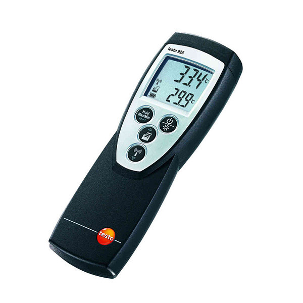 ترمومتر تماسی تستو مدل Testo 925 ابزار اندازه گیری است که برای برنامه های کاربردی درزمینه تهویه مطبوع مناسب است. ترمومتر تماسی مدل 925 که قادر به اندازه گیری دما به صورت نفوذی بوده میزان داده ها را از طریق رادیو انتقال داد، یعنی این دستگاه به صورت بی سیم داده ها را به مرکز انتقال می دهد. یک دما سنج ترموکوپل دار نوع K است که قابلیت اتصال دو نوع ترموکوپل با پراب و به صورت بیسیم می باشد و امکان نمایش همزمان دما را بر روی صفحه نمایشگر دارا می باشد.با داشتن هشدار صوتی و قابل تنظیم آن را به یک دستگاه مناسب برای واحد QC تبدیل کرده است.دماسنج ترموکوپلی تستو TESTO 925 قابلیت نمایش حداقل و حداکثر مقادیر اندازه گیری شده را دارا می باشد و می توان با نصب یک پرینتر به صورت جانبی ، مقادیر اندازه گیری شده را تاریخ و ساعت پرینت گرفت. دارای DATA HOLD نیز جهت ثابت کردن مقادیر اندازه گیری شده بر روی صفحه نمایشگر از دیگر ویژگی های این دستگاه میباشد.صفحه نمایشگر بزرگی دارد و با داشتن نور پس زمینه به راحتی می توان دستگاه را در مناطق کم نور و تاریک استفاده کرد.