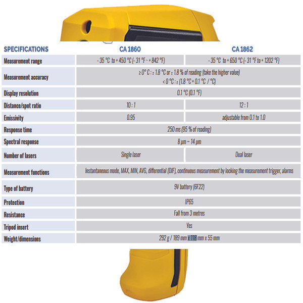 دامنه اندازهگیری: دامنه گسترده اندازه گیری از -35 ° C تا +450 ° C