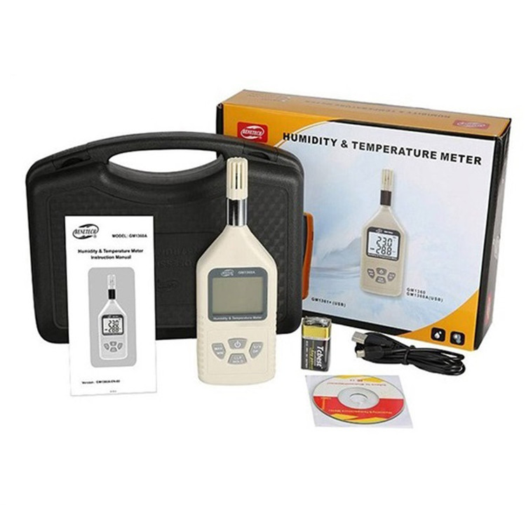 رطوبت سنج و دماسنج بنتک BENETECH GM1360A ساخت کمپانی BENETECH چین،با استفاده از تکنولوژی پیشرفته و استفاده بسیار آسان، و دارای قابلیت هایی از قبیل دقت بالا، ثبات بالا و عملکرد بالا، طراحی ارگونومیک با ظاهری زیبا، بی شک یک انتخاب صحیح برای مهندسان و متخصصین خواهد بود.میزان رطوبت مناسب و درجه حرارت یک دفتر کار، خانه، کارخانه، بیمارستان یا مکان های صنعتی مختلف، در نوع خود همواره اهمیت زیادی دارد. بنابراین وجود یک دستگاه چند منظوره برای آنالیز رطوبت و دمای محیط ضروری است.
