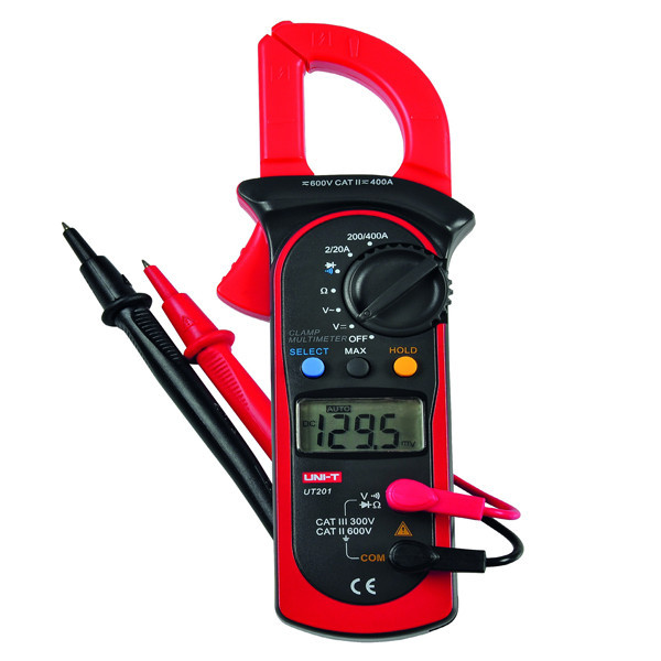 مولتی متر های کلمپی یا کلمپ متر های یونی تی ، با ایده ای مبتنی بر الکترومغناطیس پا به عرصه تولید گذاشته اند ، اساس اندازه گیری جریان بطور ساده ،القای جریان الکتریکی در حلقه یا همان کلمپ ،توسط جریان گذرنده از تک رشته سیمی که از درون آن می گذرد ، می باشد . اندازه گیری جریان گذرنده از یک رشته سیم ، بدون آنکه به عایق و یا رسانای آن سیم خدشه ای وارد شود ، به تعمیرکاران و یا افرادی که در ارتباط با برق رسانی فعالیت دارند کمک شایانی در جهت انجام صحیح کارو تسریع در دستیابی به نتیجه می کند.مولتی متر کلمپی یونی-تی مدل UT201+، تا 400 آمپر جریان الکتریکی متناوب را اندازه گیری کرده و علاوه بر آن کمیت های ولتاژ و مقاومت الکتریکی را نیز اندازه گیری می کند