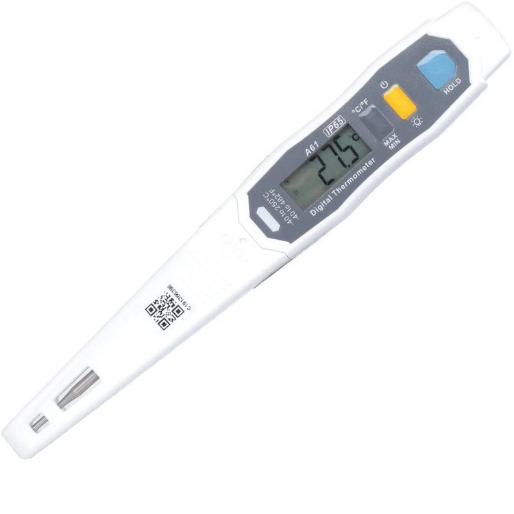 دماسنج یونی-تی مدل A61 به روش میله ای نفوذی دمای مایعات ، مواد غذایی و دارویی را اندازه گیری می کند . این دستگاه دارای محافظ برای میله دما بوده و از 40- الی 250 درجه سانتی گراد را اندازه گیری می کند طول میله فلزی 7.5 سانتی متر است .