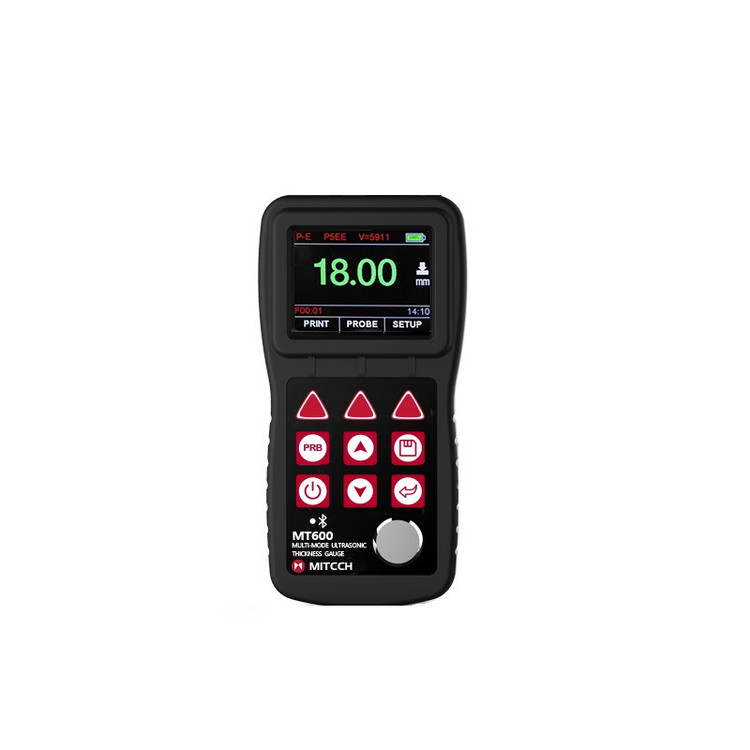 دستگاه ضخامت سنج التراسونیک MT600 ساخت میتک چین یکی از پیشرفته ترین از نوع خود است که با دو سیستم پالس اکو و همچنین اکو تو اکو میتواند اندازه ضخامت را توسط امواج التراسونیک تا 600 میلی متر با دقت 0.01 میلی متر اندازه گیری کند . این دستگاه توسط جوش آزما تجهیز ارائه میشود . این دستگاه میتواند در دو حالت pulse-echo و echo- echo ضخامت فلز را به صورت نرمال و از روی پوشش اندازه گیری کند. قابل استفاده برای انواع موادی که امواج آلتراسونیک را عبور می دهد همچون فلز، کامپوزیت، سرامیک، پلاستیک، شیشه، اپوکسی.