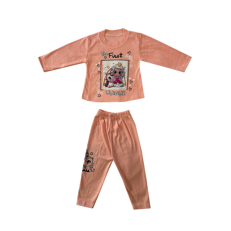 ست تی شرت و شلوار دخترانه مدل یونیکورن رنگ صورتی