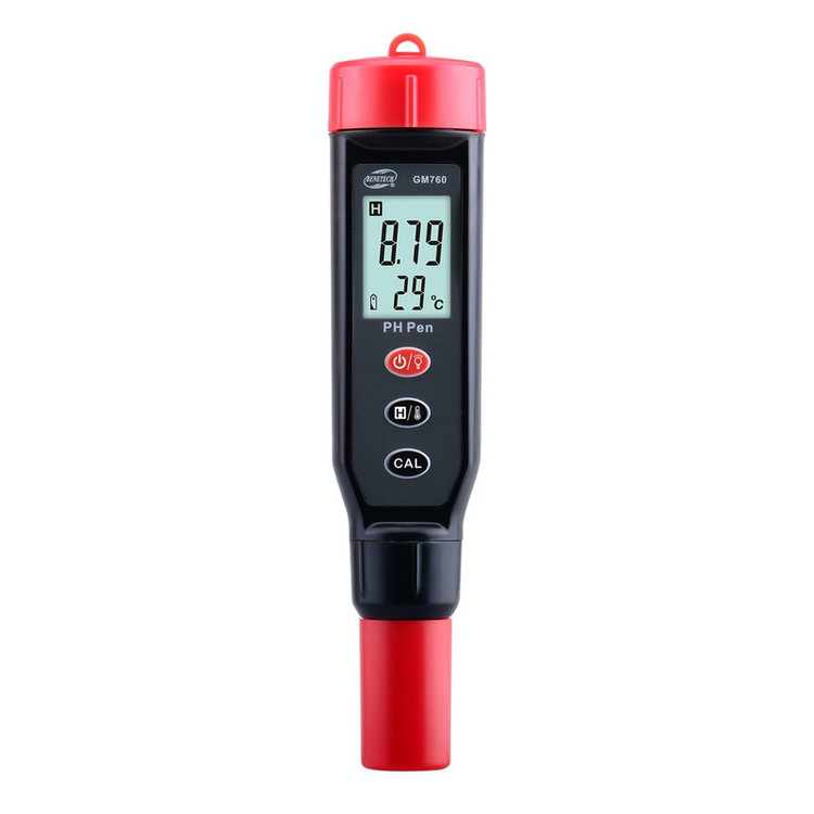 PH متر مدل GM760 (اسید سنج مدل GM760 بنتک) توانایی اندازه گیری PH در رنج 0 تا 14 را دارا می باشد و دقت این اسید سنج 10 درصد و رزولوشن آن 0.1 می باشد.رنج اندازه گیری دما در این دستگاه بین 0 تا 60 درجه سانتی گراد می باشد و خطای آن 5 درصد و رزولوشن آن 1 درصد است.این دستگها برای اندازه گیری PH محلولها مورد استفاده قرار می گیرد و دمای محلول را نیز می تواند اندازه گیری کند.صفحه نمایش LCD آن بزرگ و دارای نور پس زمینه می باشد.این دستگاه دارای قابلیت جبران حرارتی محلول نیز هست و فانکشن یادآوری کم شدن ظرفیت باتری را نیر دارا می باشد. این دستگاه توسط جوش آزما تجهیز وارد گردیده است و این محصول از دقت بالایی برخوردار است، قابل اعتماد و قابل حمل است. می توان از آن در اندازه گیری مقدار PH محلول و دمای مایع مورد اندازه گیری استفاده کرد. این می تواند در زمینه صنعت، برق، کشاورزی، پزشکی، غذا، تحقیقات علمی استفاده شود.