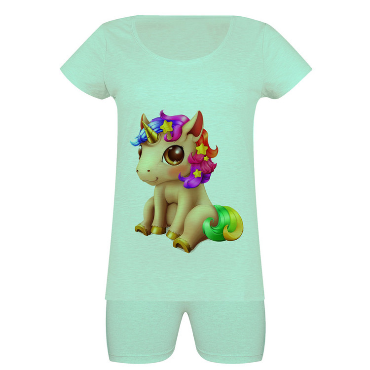 ست تی شرت و شلوارک زنانه مدل یونیکورن کد f1688a