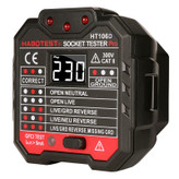 سوکت تستر مدل HT106D یک محصول کاربردی از کمپانی هابوتست می باشد که با سرعت و دقت بالا می تواند صحت اتصال سیم پریز را تشخیص دهد. همچنین دارای نمایشگر LCD با نور پس زمینه می باشد که میزان ولتاژ را نمایش داده و با نشانگرهای LED وضعیت پریز را نشان می دهد و بیانگر این است که فاز، نول و ارت سیم کشی ساختمان متصل است یا خیر. این تستر پریز که از طریق شرکت برازنده تجارت عرضه می گردد دارای ولتاژ و فرکانس بهره برداری (48V~250V/45~65Hz) می باشد. دارای تست RCD ، ارت، نول و محافظ جان بوده و از بروز خطاهای سیم کشی که منجر به آتش سوزی در منازل، کارخانه ها و ... می شود، جلوگیری می نماید.
