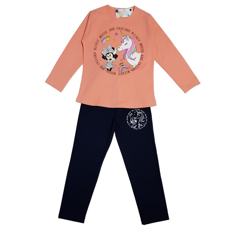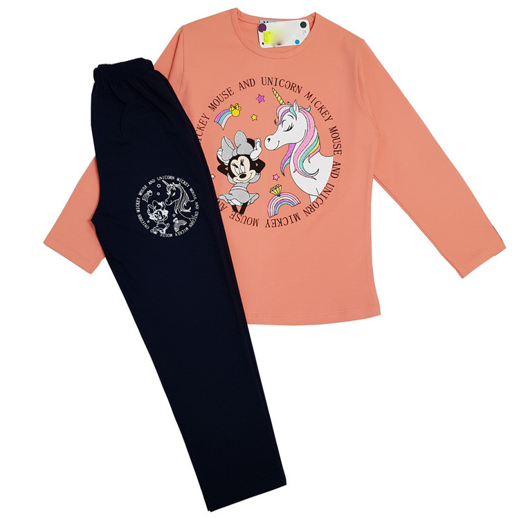 ست تی شرت و شلوار دخترانه مدل یونی کورن و میکی موس رنگ گلبهی
