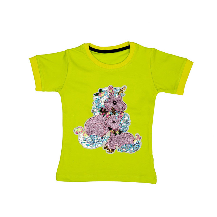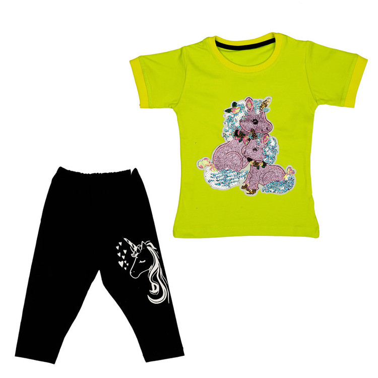 ست تی شرت و شلوارک دخترانه مدل یونیکورن رنگ زرد