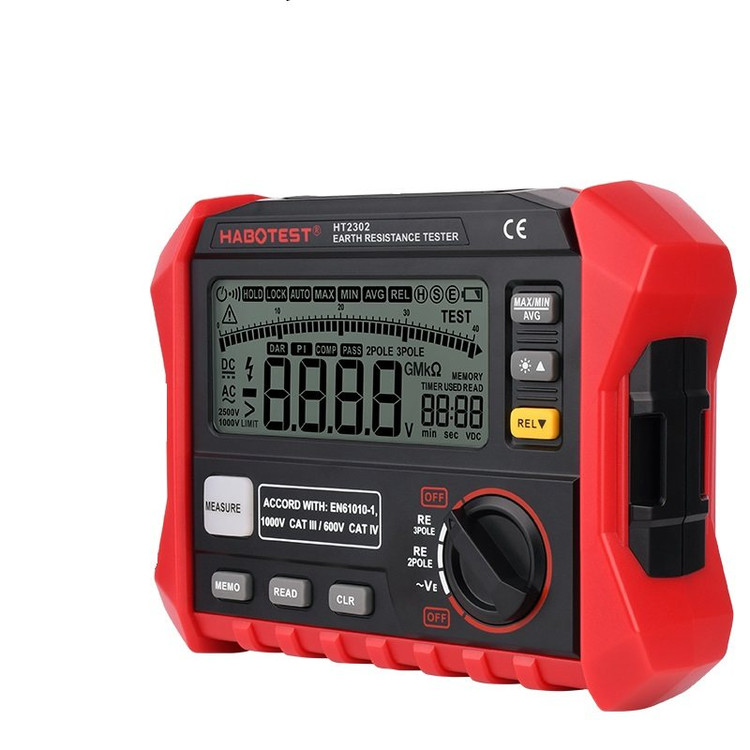+ موارد بیشترارت سنج HaboTest مدل HT2302 ارت سنج میله ای هابوتست مدل HT2302 ارت سنج یا تستر مقاومت چاه ارت می باشد که میزان مقاومت زمین را به روش های دو سیمه و سه سیمه اندازه گیری کند . این ارت سنج علاوه بر قابلیت اندازه گیری مقاومت، میزان ولتاژ زمین را نیز اندازه گیری می کند. صفحه نمایش بزرگ با نور پس زمینه، کار را برای خوانش راحت کاربرساده کرده است.همچنین این ارت تستر دارای قابلیت ذخیره 100 گروه داده اندازه گیری شده می باشد. این دستگاه قابلیت نمایش ماکزیمم، مینیمم یا میانگین و اختلاف نسبی را دارد. این ارت سنج دقیق و کارآمد که از طریق شرکت برازنده تجارت عرضه می گردد دارای قابلیت اندازه گیری مقاومت زمین تا 4 کیلو اهم و اندازه گیری ولتاژ AC زمین از 0 تا 200 ولت در فرکانس 50 تا 60 هرتز می باشد.