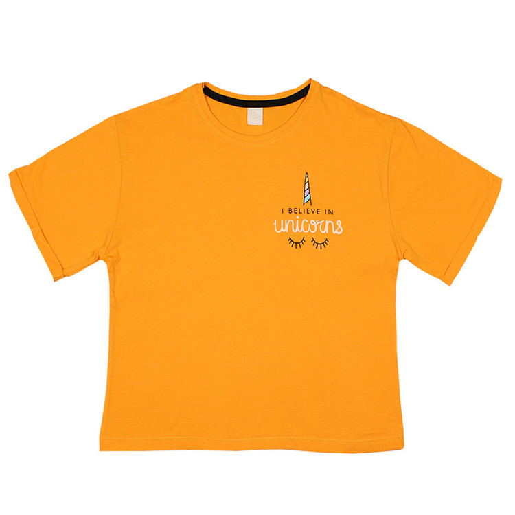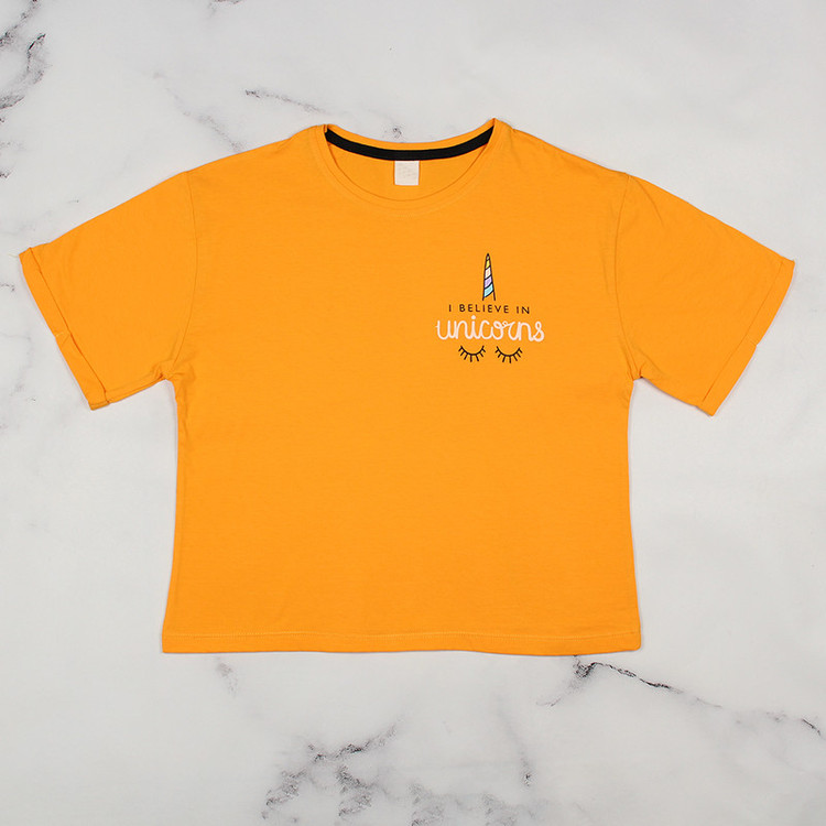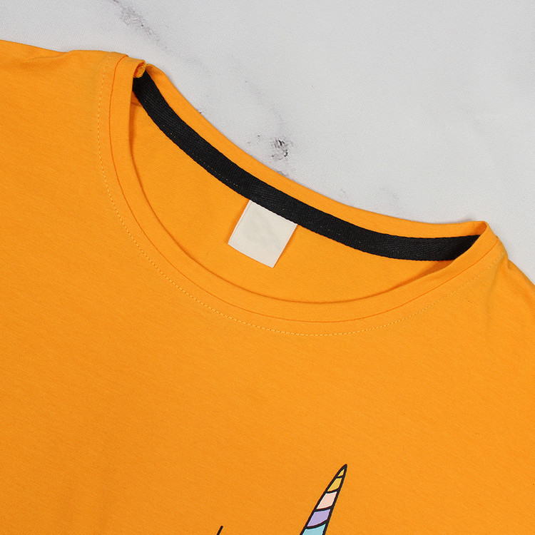 پارچه تیشرت نخی سبک (خنک) و راحت می باشد طرح یونیکورن روی تیشرت چاپ شده است