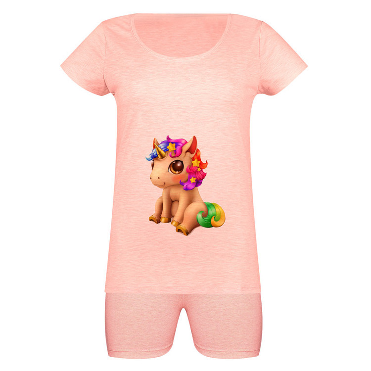 ست تی شرت و شلوارک زنانه مدل یونیکورن کد f1647l