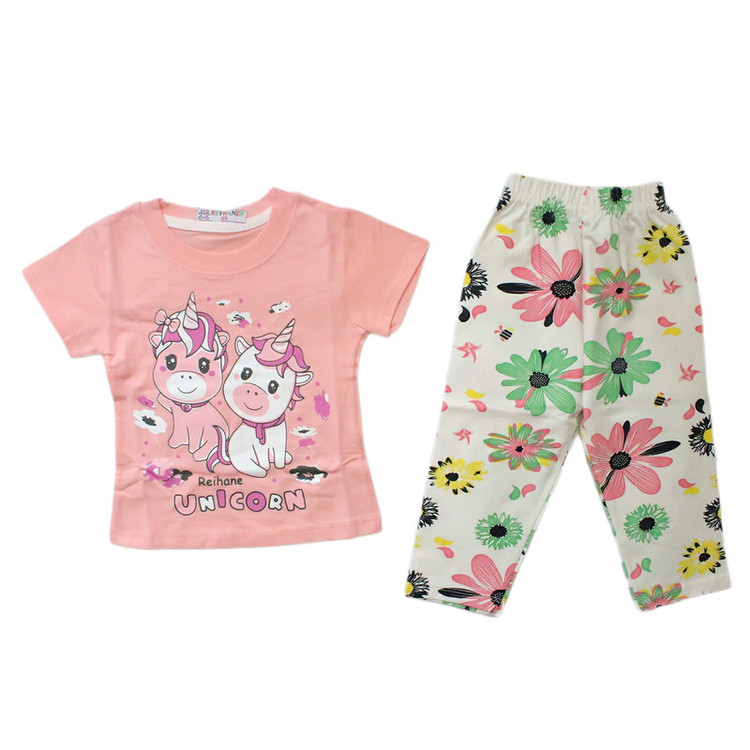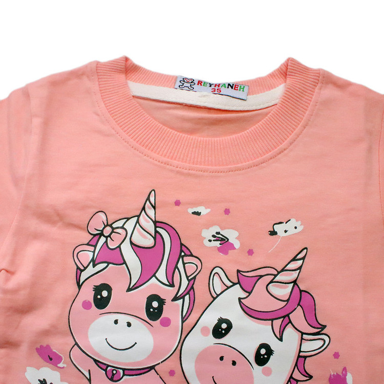 ست تی شرت و شلوار دخترانه مدل یونیکورن ریحانه رنگ صورتی
