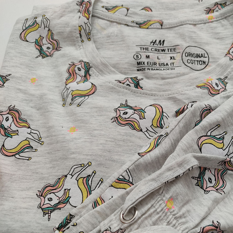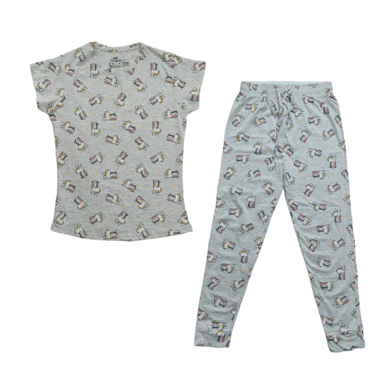 ست تی شرت آستین کوتاه و شلوار زنانه اچ اند ام مدل یونیکورن