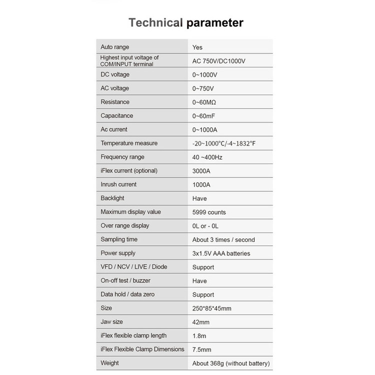 RMS صحیح , تداوم قابل شنیدن , تست خازن , تست دیود , گستره یابی اتوماتیک