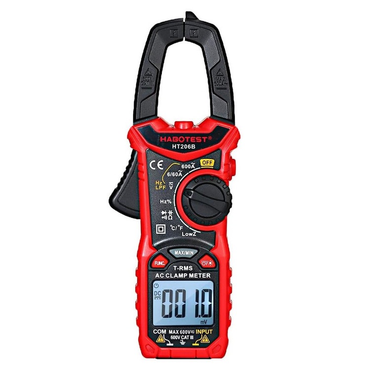 مولتی متر کلمپی هابوتست مدل HT206B چند منظوره با دقت بالا و عملکرد بالا است که می تواند ولتاژ AC / DC ، جریان ، مقاومت ، ظرفیت ، فرکانس ، RMS واقعی را اندازه گیری کند. مناسب برای آزمایش و نگهداری تجهیزات الکتریکی می باشد. این دستگاه می تواند ولتاژ DC را به میزان 600 میلی ولت،6 ولت،60 ولت و 600 ولت با دقت به میزان ±0.5% اندازه گیری کند. همچنین ولتاژ AC به میزان 6ولت، 60ولت،600 ولت با دقت به میزان ±0.8%، می باشد. جریان AC در این دستگاه به صورت،6 امپر،60 امپر و 600 امپر با دقت ±2.5% می باشد.این دستگاه می تواند مقاومت را در 600 اهم،6 کیلواهم،60 کیلواهم،600 کیلواهم،6 مگااهم و 60 مگااهم با دقت ±1.0% اندازه گیری کند. همچنین می تواند خازن را در مقادیر 10 نانوفاراد،100 نانوفاراد،1 میکروفاراد،10 میکروفاراد،100 میکروفاراد،1 میلی فاراد و 10 میلی فاراد و 100 میلی فاراد اندازه گیری کند. فرکانس در این دستگاه به میزان 10 هرتز،100 هرتز،1 کیلوهرتز،10 کیلوهرتز و 100 کیلوهرتز،1 مگاهرتز و 10 مگاهرتز می باشد. دما در این دستگاه بین محدوده -40 تا 1000 درجه سانتی گراد می باشد. از امکانات این دستگاه می توان به عملکرد نگهداری داده ، حفاظت از اضافه بار برای کل دامنه اندازه گیری ،نور پس زمینه جداگانه و نور کار و خاموش شدن خودکار اشاره نمود.