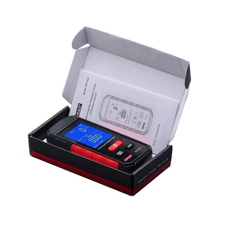 تستر تشعشع الکترومغناطیسی وینتکت مدل WT3122 اندازه گیری تابش می تواند تشعشع میدان الکتریکی و انتشار میدان مغناطیسی را برای رسیدن به نتیجه آزمایش بهینه آزمایش کند. برای آزمایش و یادگیری وضعیت تابش الکترومغناطیسی در داخل و خارج از خانه استفاده می شود. مجهز به سنسور تشعشعات غیرالکترومغناطیسی داخلی است که می تواند پس از پردازش توسط میکروچیپ کنترل، مقدار تابش را بر روی صفحه نمایش دیجیتال LCD نمایش دهد. شما می توانید با توجه به نتیجه آزمایش، پردازش معقول یا اقدامات پیشگیری موثر نسبت به تابش الکترومغناطیسی انجام دهید.واحد میدان الکتریکی بر حسب V/m با دقت یکV/m و رنج اندازه گیری 1V/m تا 1999V/m و واحد میدان مغناطیسی بر اساس µT با دقت 0.01µT و رنج اندازه گیری 0.01µT تا 19.99µT می باشد که میتواند تابش میدان الکتریکی و انتشار میدان مغناطیسی با رنج اندازه گیری امواج در محدوده های 0.01μT-99.99μT - 1V/m-1999V/mرا آزمایش کند تا به نتیجه آزمایش مطلوب برسید . از این دستگاه برای آزمایش و یادگیری وضعیت اشعه الکترومغناطیسی electromagnetic radiation در محیط داخلی و خارج استفاده می شود. مجهز به حسگر تابش الکترومغناطیسی داخلی است که می تواند مقدار تابش را در صفحه دیجیتالی LCD نمایش دهد پس از پردازش توسط میکرو تراشه کنترل عدد نمایش میدهد . با توجه به نتیجه آزمایش ، می توانید پردازش معقول و یا اقدامات پیشگیری مؤثر در برابر اشعه الکترومغناطیسی electromagnetic radiation انجام دهید. موارد مورد استفاده : نظارت بر اشعه الکترومغناطیسی، خانه و آپارتمان ، دفتر ، سایت در فضای باز و صنعتی؛ تلفن همراه ، رایانه ، تلویزیون ، یخچال و فریزر کابل با ولتاژ بالا است .