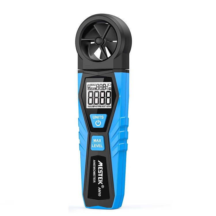 سرعت سنج باد مدل AM10 ساخت MESTEK این بادسنج دیجیتال می تواند سرعت باد، دمای باد، نشانگر کم بودن باتری را روی صفحه نمایش LCD روشن با نور پس زمینه به دقت اندازه گیری کند. قابل حمل برای اندازه گیری باد در داخل و خارج از منزل، مانند: تیراندازی دوربرد، قایقرانی با قایق، پرواز بادبادک، کوهنوردی، رانندگی پهپاد، هواکش، تست جریان هوای توربین و غیره. این بادسنج جدید توسط شرکت جوش آزما تجهیز وارد گردیده است . اندازه گیری محدوده سرعت: 0.3-30 متر بر ثانیه میباشد .