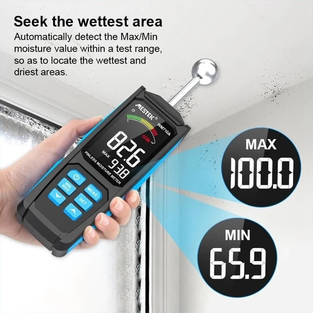 رطوبت سنج دیجیتالی چوب مستک مدل MW710A کاربردهای گسترده ای دارد که میتوان به موارد زیر اشاره کرد: دستگاه MW710A می تواند چوب نرم، چوب سخت، دیوار مرطوب، سقف، بتن و غیره را تشخیص دهد. این رطوبت سنج دیواری با ارسال و دریافت سیگنال های فرکانس بالا به و از مواد اندازه گیری از طریق یک پروب کروی، رطوبت را به روشی غیر مخرب تشخیص می دهد. با استفاده از امواج با فرکانس بالا برای نفوذ به دیوارهای ضخیم، میتواند به طور غیرقابل تخریب مواد مختلفی را برای تعیین محل توزیع رطوبت روی دیوارها، گوشهها، کف یا سقفها بدون نیاز به قرار دادن الکترود در مواد مورد اندازه گیری آزمایش کند. این دستگاه دارای قابلیت خاموش شدن خودکار میباشد. عمق اندازه گیری دستگاه WM710A 20-40 میلی متر است .این دستگاه توسط شرکت پترو پژوهش خاورمیانه وارد گردیده است . رنج اندازه گیری رطوبت سنج چوب مستک MW710 A 0-100 میباشد. این دستگاه دارای صفحه نمایش رنگی بزرگ است و همین قابلیت خوانش را آسان میکند.همچنین قابلیت ثبت کردن مقادیر MAX وMIN را داراست. کالیبراسیون سریع یک دکمه، هنگام شروع، "MEAS" را فشار دهید. حداکثر عمق اندازه گیری: 40 میلی متر. اندازه گیری تک نقطه ای می تواند مقادیر MAX/MIN را همزمان نمایش دهد. عملکرد هشدار - نتیجه اندازه گیری Weep / RISK / Wet را می توان با توجه به مقدار هشدار نمایش داد و کاربر می تواند به طور خودکار آستانه زنگ را تنظیم کند. رطوبت سنج را می توان برای اندازه گیری بیشتر انواع بنایی، گچ، چوب، بتن، سیمان، مسکن و کانکس استفاده کرد. این ابزار عالی برای صاحبان خانه، سازندگان، نجاران و باغبانان برای شناسایی مشکلات نشتی و نشتی است. توجه: مواد فلزی و سطوح ناهموار را نمی توان اندازه گیری کرد.
