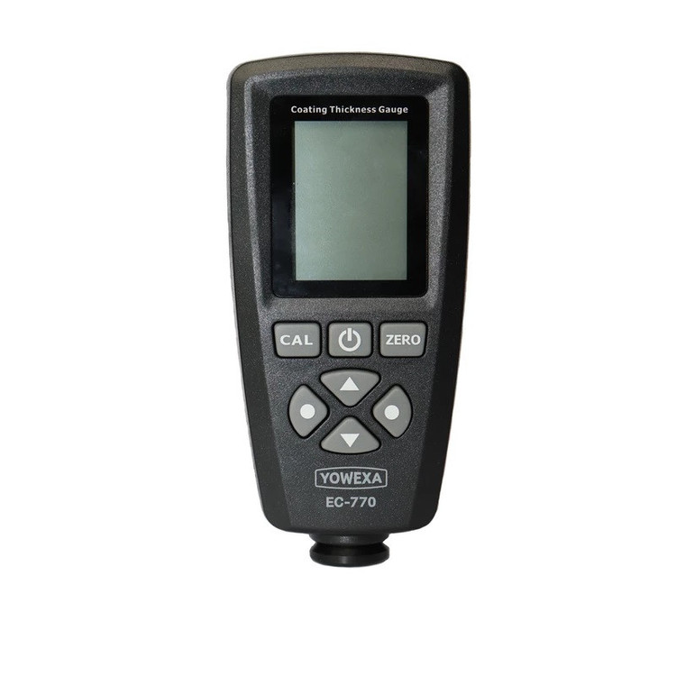 دستگاه ضخامت سنج رنگ بدنه خودرو مدل Yowexa Coating Thickness Gauges EC-770 را می توان برای اندازه گیری غیر مخرب ضخامت پوشش های غیرمغناطیسی، به عنوان مثال: رنگ، لعاب، کروم روی استیل، و پوشش های عایق، مانند رنگ و پوشش های آنودایز بر روی فلزات غیرآهنی، استفاده کرد. پراب داخلی می تواند بر اساس هر دو اصل، القای مغناطیسی و جریان گردابی کار کند. پراب می تواند به صورت خودکار نوع زیرلایه (مغناطیسی یا غیر مغناطیسی) را تشخیص دهد و ضخامت پوشش را محاسبه کرده و آن را به سرعت نمایش دهد. پنج گروه داده وجود دارد که به صورت اتوماتیک در حافظه ذخیره می شود. هر گروه دارای اطلاعات منحصر بفرد، تنظیمات محدودیت زنگ هشدار و کالیبراسیون است. کاربر می تواند اطلاعات ذخیره شده را به راحتی ببیند و حذف کند. کاربر تمام عملیات را از طریق منوی استاندارد به راحتی انجام می دهد. همچنین با فشردن دکمه CAL به سادگی دستگاه را کالیبره می کند.