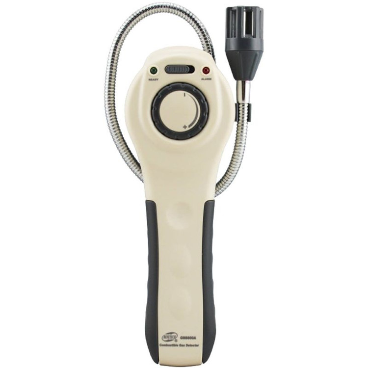 نشت یاب گاز مدل GM8800A ساخت کمپانی BENETECH چین، یک دستگاه دتکتور گاز آلارمی است که در صورت وجود گاز در محیط آن را تشخیص داده و کاربر را بوسیله ی چراغ و هشدار مطلع می سازد. ویژگی های مهم این دتکتور گاز عبارتند از: زمان تشخیص کوتاه ، آماده سازی برای محیط در زمان مناسب، 8 ساعت استفاده مداوم ، دمای مناسب برای عملکرد دقیق در 52 درجه سانتیگراد ، منبع تغذیه 1.5 ولتی و غیره.موارد کاربرد این نشت یاب گاز: خطوط انتقال گاز ، ایستگاه های پر کردن گاز پروپان، نشت سوخت در اگزوز دریایی، ایمنی گازهای کشف شده متان، گازهای طبیعی، گازهای زغال سنگ، بخار، پروپان، صنعتی، اتانول، بوتان، پروپانول، صنعتی حلال، سوخت اسپری، هیدروژن سولفوره، رنگ، CO، کتون، بنزین، نفتا، دود و آمونیاک