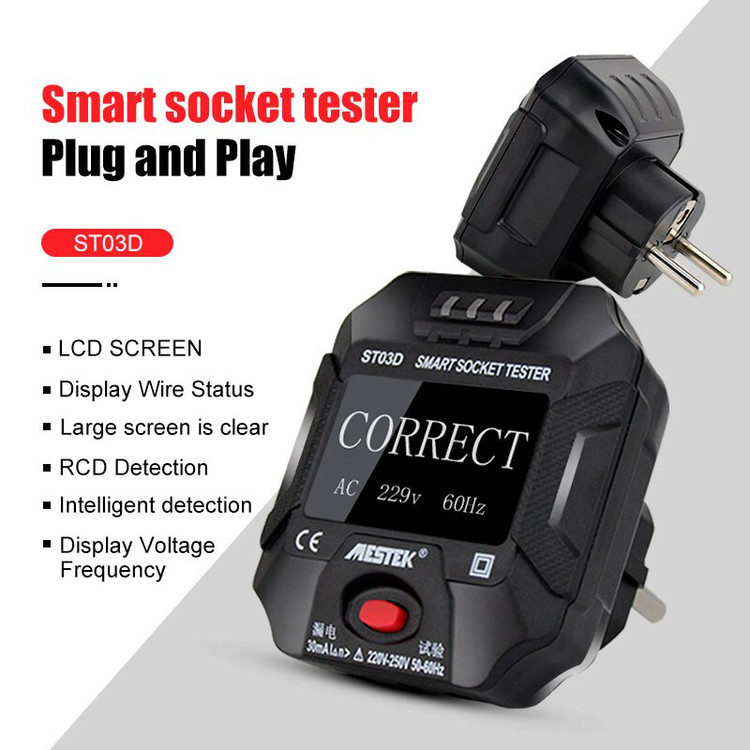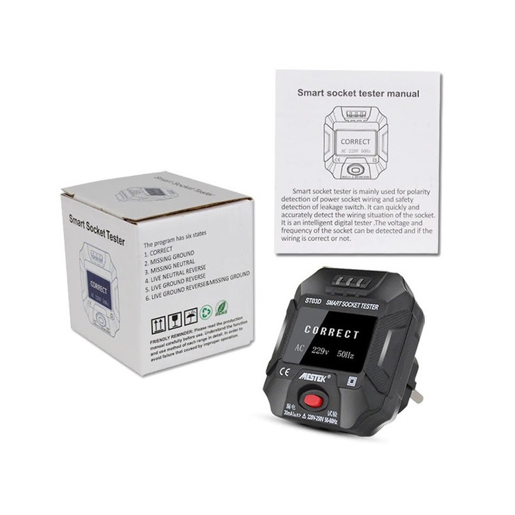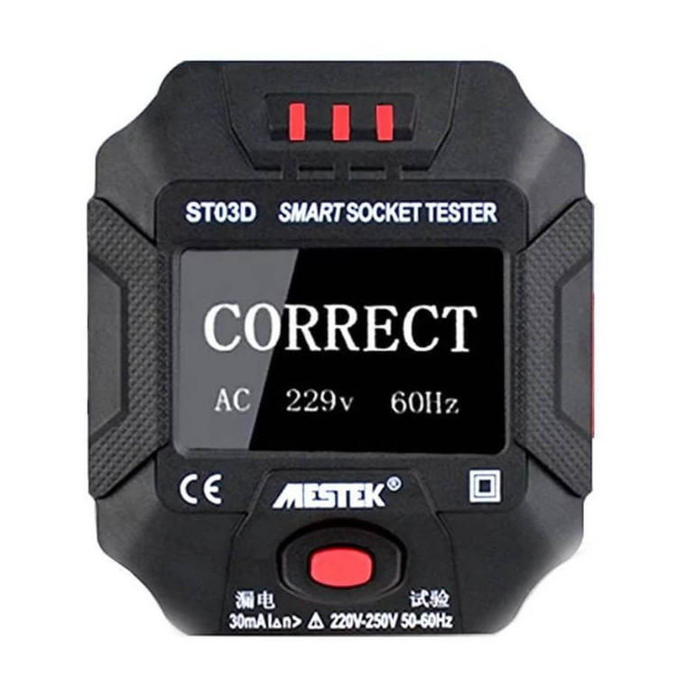 بدون نیاز به باتری مناسب برای تست سیم کشی های ساختمان دارای مانیتور ، میزان ولتاژ مقاوم و بادوام ، نمایش ویژگی ها :correct, missing ground, missing neutral, live neutral reverse, live ground reverse, live ground reverse&missing ground