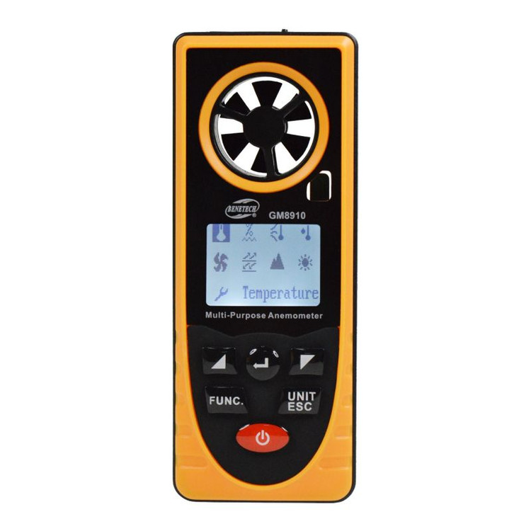 باد سنج چند منظوره دیجیتال مدل GM8910 محصول شرکت بنتک با قابلیت اندازه گیری چند پارامتر مهم و پر کاربرد از جمله دما، رطوبت، لرزش باد، نقطه شبنم، سرعت باد، فشار باد، ارتفاع، روشنایی یکی از بهترین دستگاه های کمپانی BENETECH شناخته شده است. همچنین ذخیره دیتاهای اندازه گیری شده در حافظه دستگاه به دو صورت خودکار و دستی انجام می شود. این دستگاه توسط مجموعه جوش آزما تجهیز وارد شده است.
