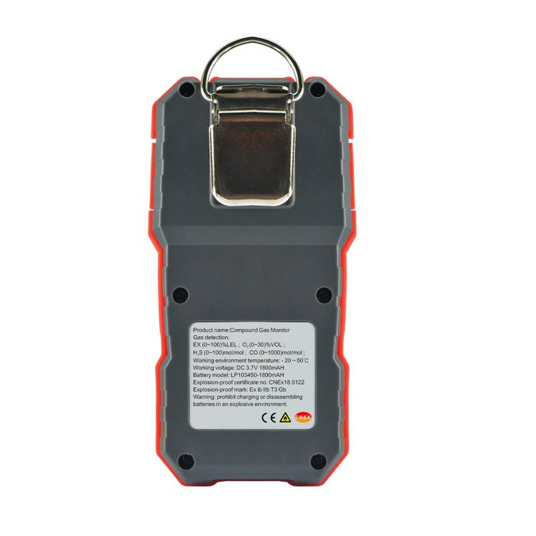 رنج اندازه گیری LEL : 0-100% رنج اندازه گیری O2 : 0-30% رنج اندازه گیری H2S : 0-100 رنج اندازه گیری CO : 0-1000 صفحه نمایش بزرگ - ویبره-آلارم صوتی-شارژر-بدنه ضد انفجار