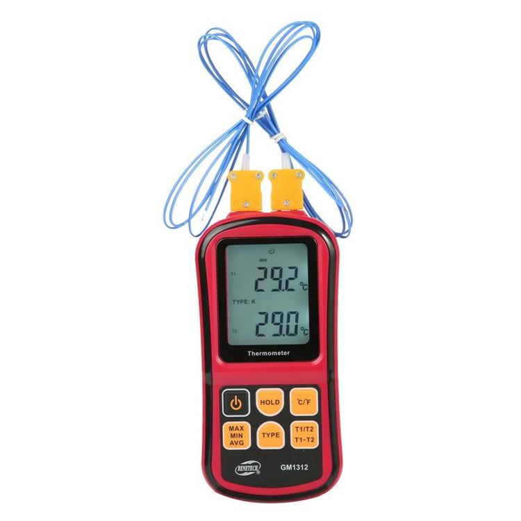 ترمومتر | دماسنج تماسی ارزان قیمت بنتک مدل BENETECH GM1312 یک ترمومتر تماسی پرتابل و ارزان قیمت با دقت 0.1% و ثبات 0.1 درجه سانتیگراد از برند بنتک چین میباشد. از ویژگیهای مهم این ترمومتر تماسی ارزان قیمت میتوان به اندازه گیری بازه گسترده دمایی با اتصال پراب های مختلف از -210 تا 1767 درجه سانتیگراد با وضوح 0.1 یکدهم و ضریب تبدیل دمایی از سانتیگراد به فارنهایت ، درجه نمایشگر چراغدار اشاره کرد. ویژگی مهم میتوان به پشتیبانی انواع پراب های اندازه گیری دما از جمله تیپ های J,K,T,E,N,S اشاره کرد.