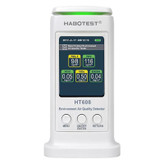 دستگاه HT608، یک سنجش کیفیت هوا در محیط داخلی با نمایش به صورت آنالوگ و دیجیتال است که قادراست مجموع ترکیبات آلی (TVOC) و فرمالدئید (HCHO)، بنزن ، دما ، رطوبت و ذرات معلق در هوا (PM) را اندازه گیری کند. این دستگاه مناسب برای بهسازی کیفیت هوا منزل و آشکارساز آلودگی هوا می باشد. این دستگاه می تواند مجموع ترکیبات آلی (TVOC) را بین 0 تا 3 میلیگرم/مترمکعب با میزان برطرف سازی 0.01 میلیگرم/مترمکعب با دقت ±10% و فرمالدئید (HCHO) را بین 0 تا 9.99 میلیگرم/مترمکعب با میزان برطرف سازی 0.01 میلیگرم/مترمکعب با دقت ±10% اندازه گیری میکند. این دستگاه همچنین میتواند بنزن را بین 0 تا 9.99 میلیگرم/مترمکعب با میزان برطرف سازی 0.01 میلیگرم/مترمکعب با دقت ±10% اندازه گیری کند.این دستگاه وارد شده توسط پترو پژوهش خاورمیانه اندازه گیری ذرات معلق در هوا (PM2.5) بین 0 تا 999 میکروگرم/مترکعب با میزان برطرف سازی 1 میکروگرم/مترکعب و دقت ±10% را دارا است و میزان اندازه گیری ذرات معلق در هوا (PM10) بین 0 تا 999 میکروگرم/مترکعب با میزان برطرف سازی 1 میکروگرم/مترکعب و دقت ±10% است.