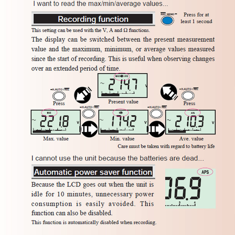 گسترهیابی اتوماتیک , تست دیود , تداوم قابل شنیدن , RMS صحیح