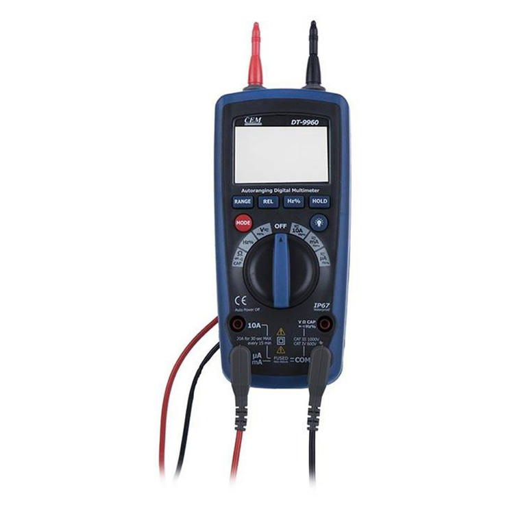 مولتی متر دیجیتال CEM DT-9960 دستگاه مولتیمتر با کیفیت و دقت اندازه گیری مطلوب با قابلیت اندازه گیری جریان، ولتاژ، مقاومت الکتریکی، ظرفیت خازن، فرکانس، دما، و انجام تست های بیزر، تست دیود و اتصال کوتاه می باشد.