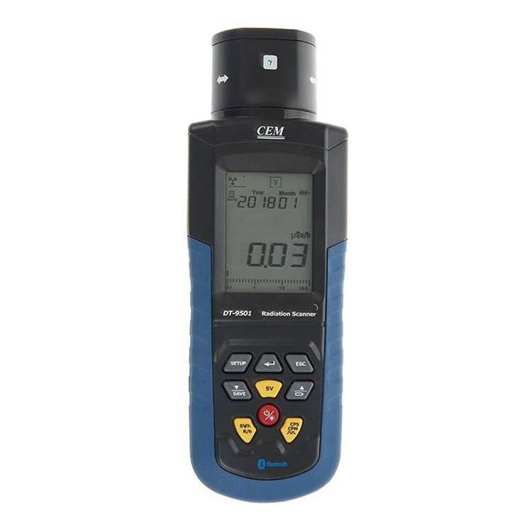 اشعه سنج رادیواکتیو CEM DT-9501 با توانایی اندازه گیری مقدار انباشتگی ضبط بیشترین مقدار و آنالیز داده ها، برای سنجش آلودگی اشعه رادیواکتیو دارای تاییدیه CE اروپا ، دستگاه اسکن و اندازه گیری پرتوهای رادیو اکتیو محصول کمپانی CEM است. اشعه سنج رادیواکتیو CEM DT-9501 دستگاهی است مناسب برای تشخیص و اندازه گیری اشعه های α ، β ، γ و اشعه x به طوری که اندازه گیری نرخ تابش در بازه ۰٫۰۱μSv/hتا ۱۰۰۰μSv/h می باشد. همچنین این مدل DT-9501 به منظور ثبت و ذخیره اطلاعات حاصل از اندازه گیری دارای حافظه داخلی است که پس از اندازه گیری نتایج حاصل را از طریق اتصال بلوتوث به کامپیوتر منتقل می کند و بدین ترتیب می توان اطلاعات را توسط کامپیوتر مورد ارزیابی و آنالیز قرار داد. دستگاه دستی دیجیتالی با عملکرد چندگانه طبق جدیدترین استانداردها ساخته شده است .از جمله ویژگی های این محصول دیتالاگ، بلوتوث ارتباط برای انتقال داده ها، و نرم افزار قدرتمند برا یآنالیز داده ها. این دستگاه میتواند اشعه های رادیواکتیو α, β,γ and χ ray را و همچنین … اشعه سنج رادیواکتیو CEM DT-9501 اندازه گیری میتواند به طور گسترده ای در تولیدات دارویی، آزمایشگاه ها، نیروگاه ها، ایستگاه های نجات، صنایع فلز، تجهیزات نفتی، حفاظت از محیط زیست، ادارات پلیس و موارد دیگر. علاوه بر این می توانید هر یک از پارامتر های α ، β ، γ و x را انتخاب کرده و نتیجه اندازه گیری را بر روی صفحه نمایشگر LCD چندگانه دستگاه مشاهده نمایید.